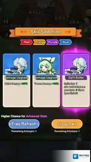 2、进入关卡后角色会自动攻击出现的敌人,当消灭某些部位后会获得技能强化或者获得新英雄。