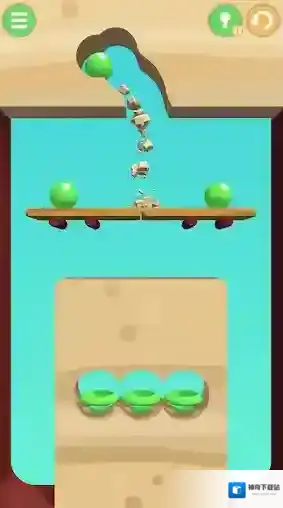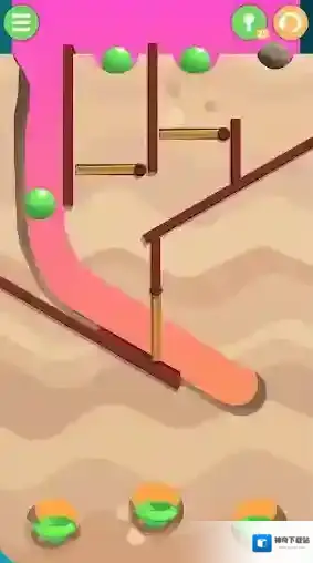 1、开始游戏后,通过拖动屏幕来挖掘通道,控制小球落到指定的位置。