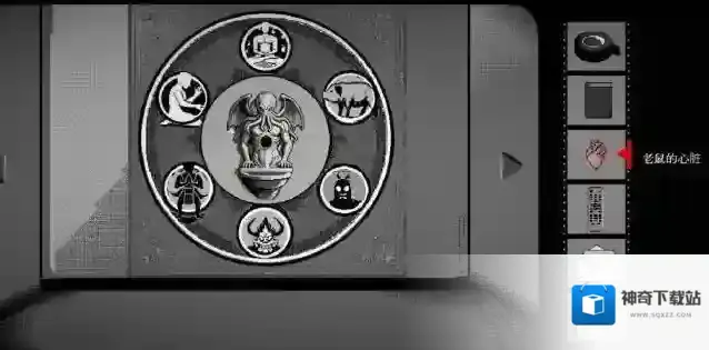 10、然后回到培养皿所在房间,点击培养皿前面的祭坛。左侧放上老鼠心脏,右侧放上人偶,唤醒克苏鲁幼崽。然后将毒药对准喂食口使用,之后培养皿玻璃破碎,游戏结束。