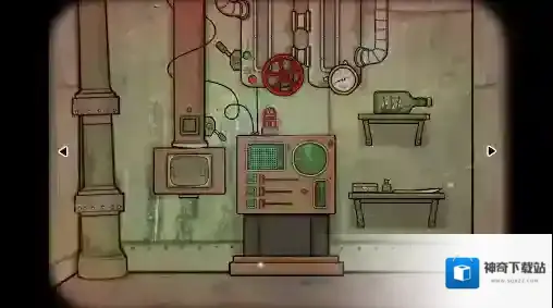 17、潜水艇—操作台视角:点击操作台上方的装置,拉动左侧的把手三次,将深度调整到00。