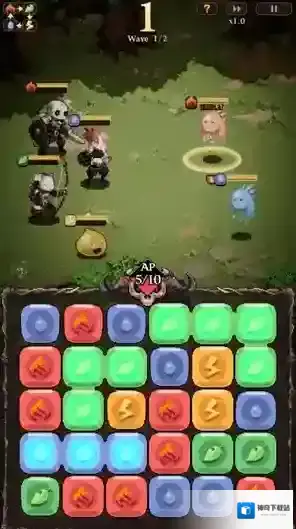 4、点击战斗开始后就可以开始闯关,有些关卡会在开始有一段剧情,剧情结束后就会进入战斗,进入战斗后玩家需要消除方块让角色攻击,每消除一个对应元素方块就可以让一位同元素角色进行攻击。