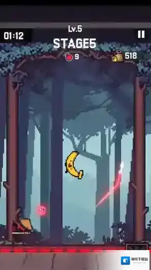 2、进入关卡后水果会从上方掉落,按住屏幕滑动手指预定攻击位置,松开手指角色就会进行攻击。