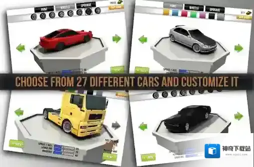 游戏中共提供了五种游戏模式,即可享受休闲的单/双向车道行驶,也可以尝试突破极限的计时赛,还有紧张刺激的警察追逐呢!不仅如此,游戏内还有着丰富多样的炫酷汽车可以解锁驾驶,每一辆都可以自由更换喷漆、轮毂,以及升级提升性能哦!