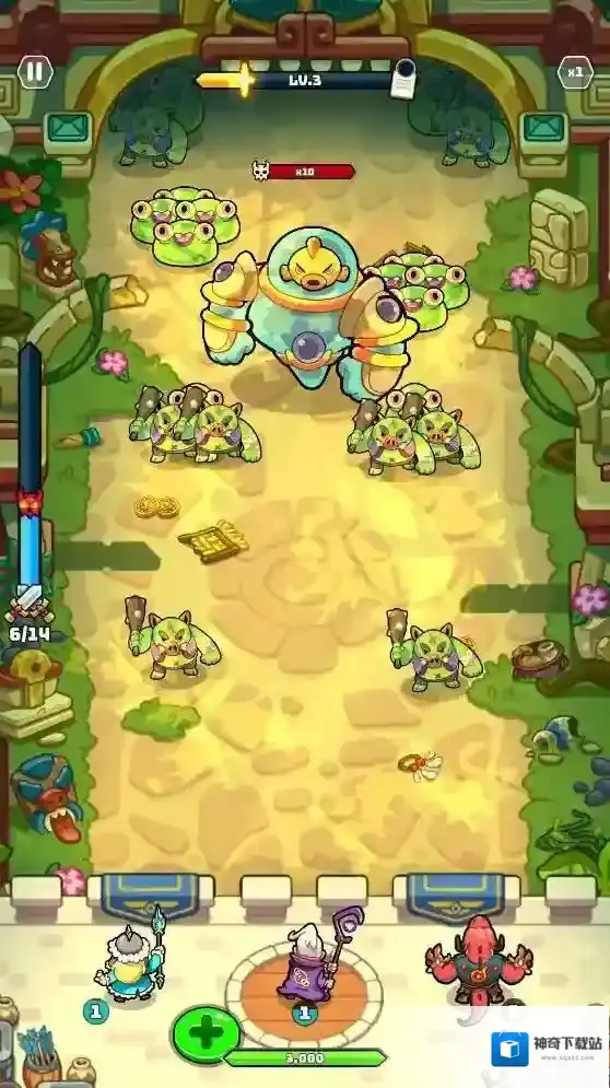 3、消灭怪物会获得经验值,提升等级后玩家可以选择召唤新英雄或者选择一个强化提升英雄的能力。