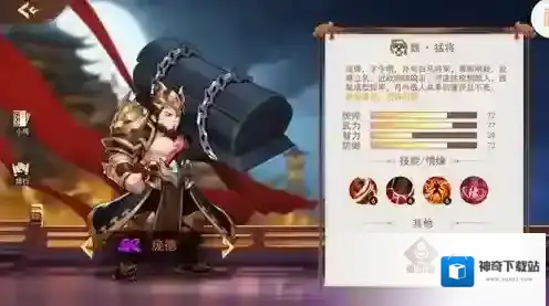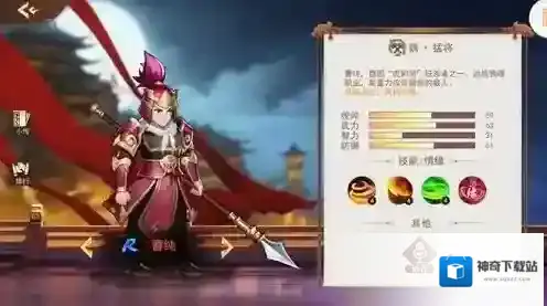1、每个武将都有四个属性值,玩家可以根据角色数值来安排阵容和战场。