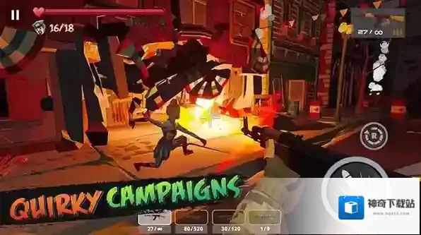 4、卡通化视觉表现,以轻松画风呈现紧张刺激的僵尸题材,降低恐怖元素适合更多玩家。