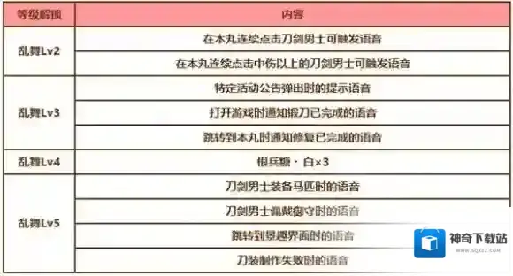「乱舞」等级提升后,可以触发新的语音并了解到刀剑男士新的一面。