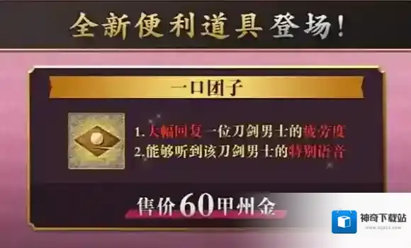 本次活动结束后,仍可在万屋购买一口团子,依旧可以使用道具一口团子恢复刀剑男士疲劳值,并听到特殊语音。