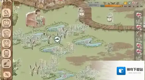 2、游戏中可以去收集各种颜色的可爱小青蛙,将它们收藏在自己的蛙蛙图鉴当中,还可以用相机留下可爱瞬间。