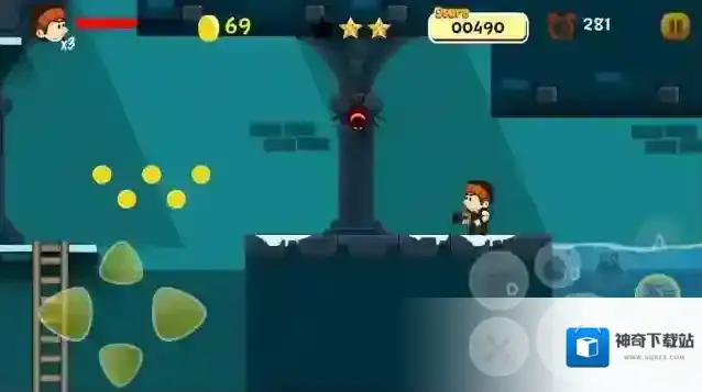 4、拾取金币和击败怪物可以获得分数,每个关卡都有三个星星等你去寻找,找齐三个星星就可以三星通关。