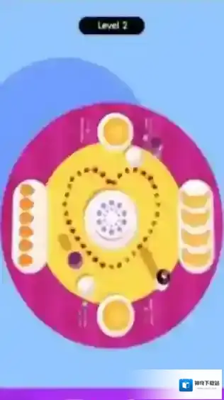 3、画面呈现圆形餐桌及各类餐具、餐食摆盘,玩法围绕按关卡要求布置餐桌、摆放餐品等展开,属于模拟布置体验。