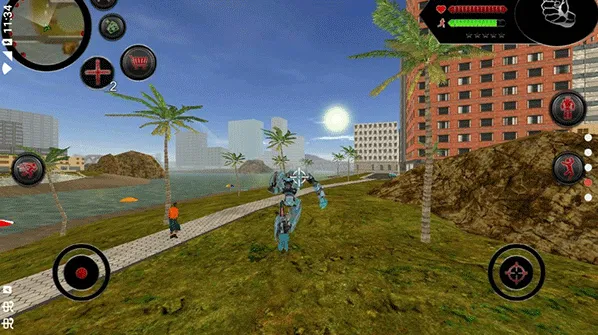 2.变形机制核心玩法,机器人可化身为3D真实鲨鱼在水中潜行,也能变回人形在模拟城市中行走战斗