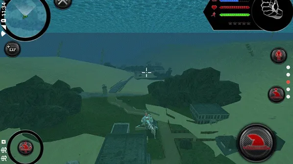 3.海陆空立体战斗,水中鲨鱼形态高速突袭,陆地人形形态使用武器与技能,空中可借助跳跃或载具实现全方位打击
