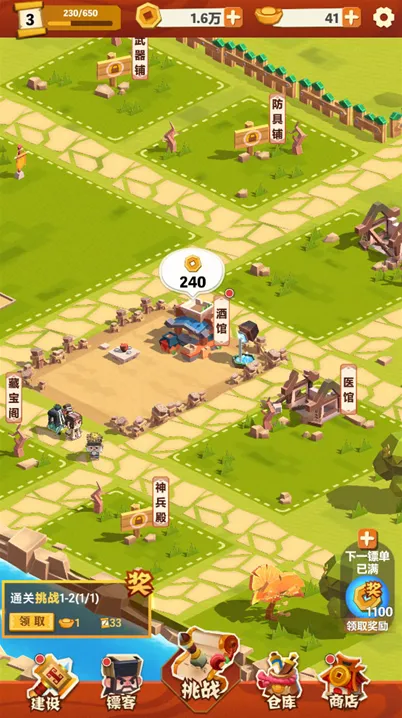 镖局建设:玩家可以建设和升级各类设施,提升镖局的整体效能。点击建造图标,可以打造一家专属自己的酒馆、仓库等建筑。