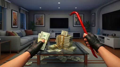 小偷模拟,英文全名为Thief Simulator:Steal A House,是一款模拟小偷行窃的角色扮演类手游。游戏中玩家们扮演的神偷将会潜入到各种场景中,如银行、住宅、博物馆等等,小心翼翼的盗取各种财宝,并设计好最佳逃跑路线,最终安全的将货物带出!另外,每一次出发前,谨慎的选择好自己的团队和工具,否则一旦出现差错就会被抓住!