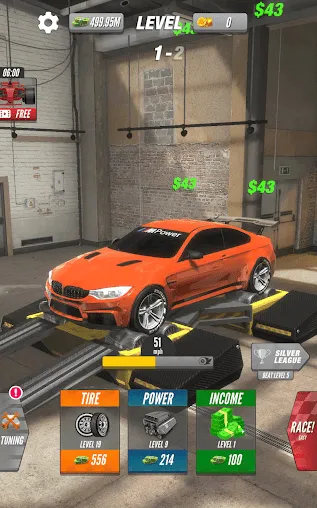 马力机竞速(Dyno 2 Race),一款融合了模拟经营玩法的趣味竞速游戏。游戏中我们可以通过发动汽车引擎来获得短暂的收益,从而积累资金来升级汽车,当汽车修复到一定规模后就能参加比赛,赚取更多的奖励,帮助你去升级解锁更多炫酷的车辆!除此之外,我们还可以自由的定制汽车,从车身、轮毂到引擎,甚至可以加上各种个性的车贴!