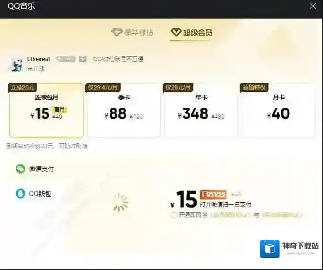 连续包月:首月15元(原价40元,立减25元),到期自动续费28元/月(可随时取消)。