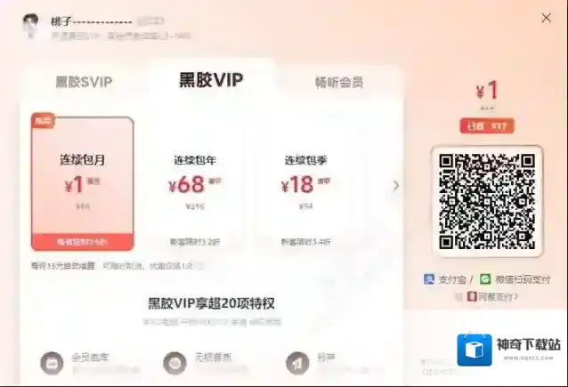 连续包月:首月1元(原价18元),到期自动续费15元/月(可随时取消,优惠仅1次)。