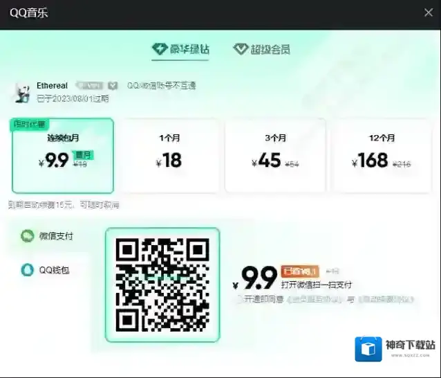 连续包月:首月9.9元(原价18元),到期自动续费15元/月(可随时取消)。