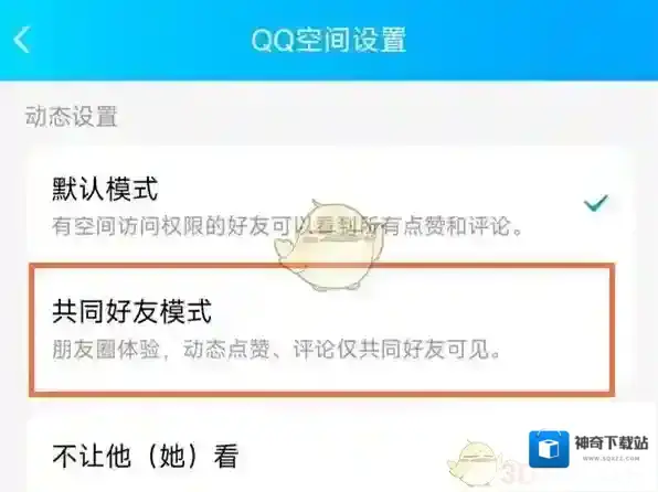 1、打开QQ,点击左上角头像。点击设置,选择隐私。2、点击权限设置,点击空间动态。3、勾选共同好友模式即可。 本文内容来源于互联网,如有侵权请联系删除。2025-07-28 -