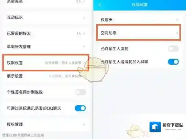 2、点击权限设置,点击空间动态。