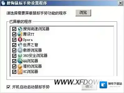 3、安装完成后会自动开启鼠标手势功能,在弹出的对话框中,会看到鼠标手势的一些操作方法