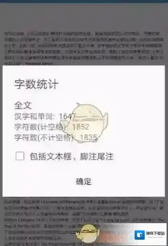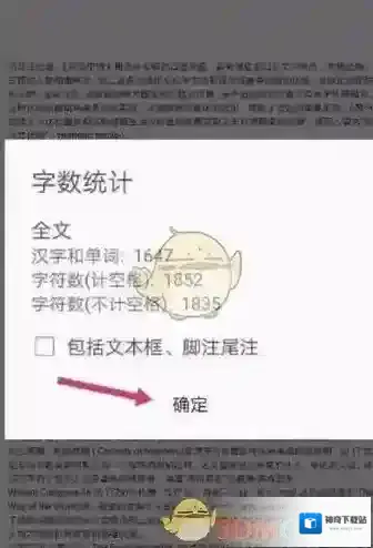 5.就会出来字数统计,大家可以选择不包括文本框、脚注尾注。