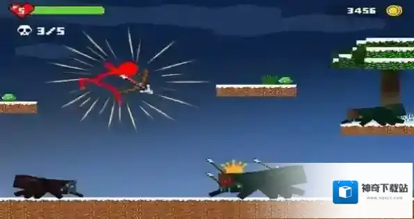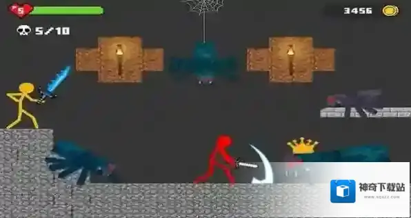 1、灵活操作控制:通过简单触屏操作控制火柴人移动、攻击与跳跃,上手轻松且操作灵活,可精准的应对各种复杂关卡场景。