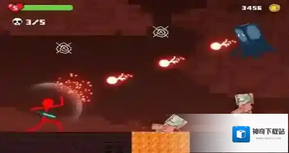 3、玩家操控火柴人在像素化MC世界中战斗、闯关、收集资源,融合动作与像素冒险玩法,提供趣味的像素风冒险体验,核心玩法含战斗、闯关、资源收集。