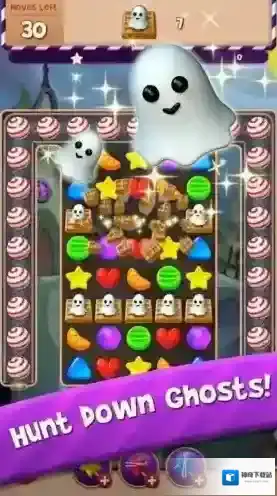 2、双模式关卡矩阵:常规关卡设置“糖果收集”“障碍破除”等目标,特殊关卡开启“幽灵搜寻”模式,需在消除中识破伪装糖果下的幽灵,误触则触发藤蔓缠绕等随机障碍。