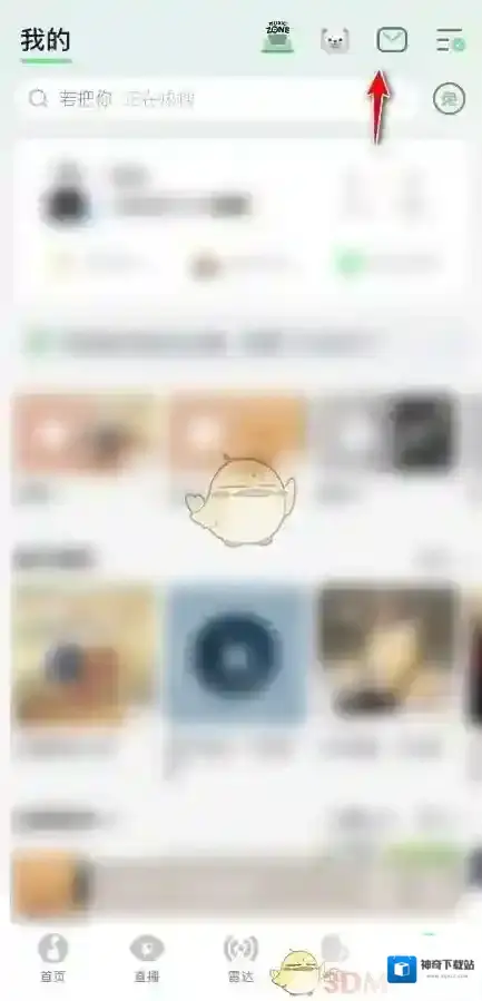 1、首先打开qq音乐软件,进入到首页中后我们可以切换到直播、雷达、社区、我的页面,我们点击右下角的我的;