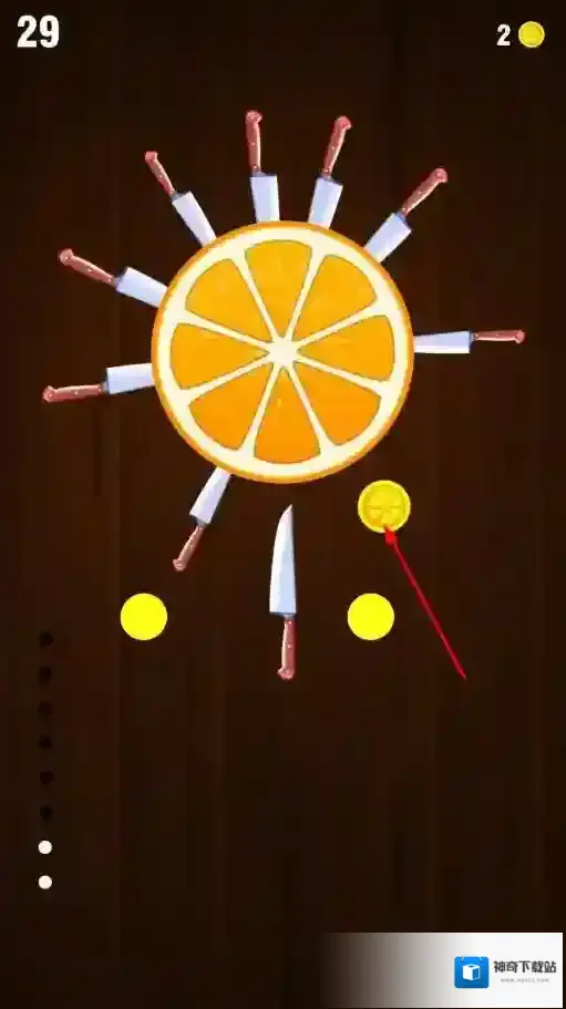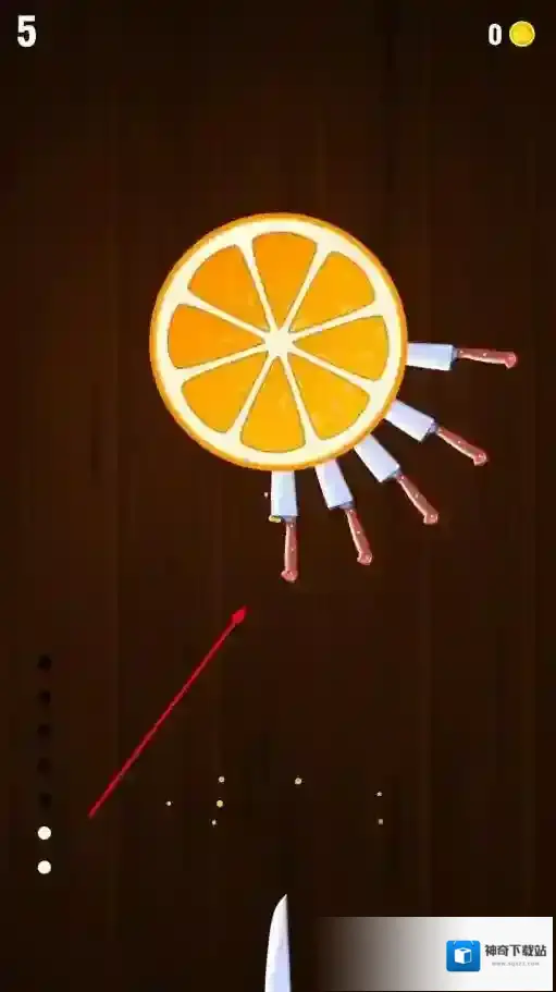 1、进入关卡后,观察旋转水果的轨迹,点击屏幕发射飞刀,瞄准水果空白区域插入,避免与已有飞刀碰撞,单次插入多刀可触发“连击加分”。