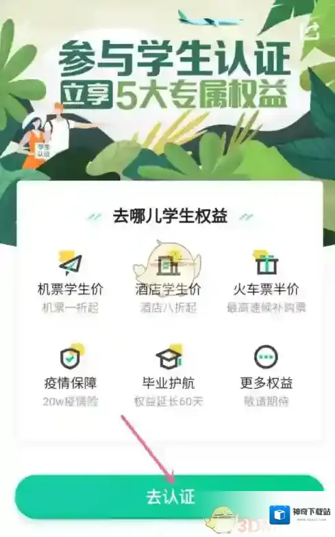4、随后在参与学生认证的海报的页面选择“去认证”选项