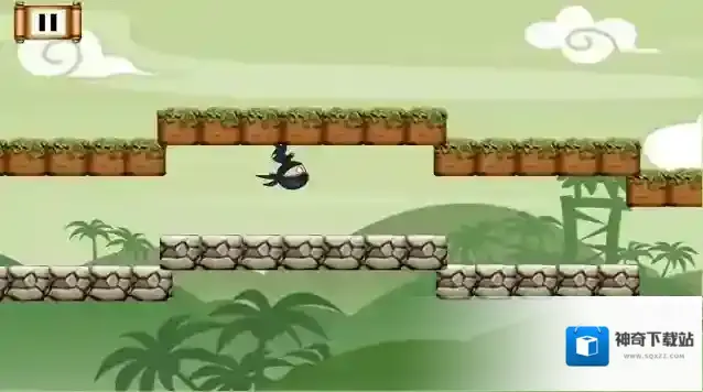 1、于水墨竹林关卡中,操控忍者施展基础跳跃,跨越首个低矮尖刺陷阱,开启闯关。