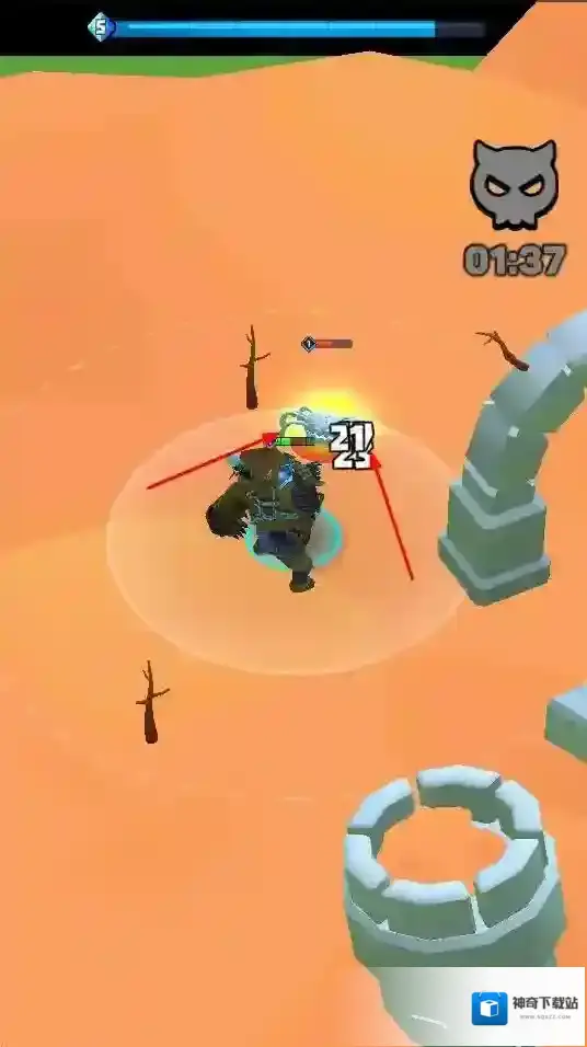 3、“猎杀怪物”,利用技能和武器,攻击并消灭怪物,完成关卡,获取奖励升级。