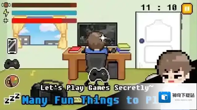 1、趣味伪装玩法:玩家需要在家长严密监视下巧妙隐藏游戏行为,通过快速切换界面(从游戏切回书本)等精细操作,躲避突如其来的检查。