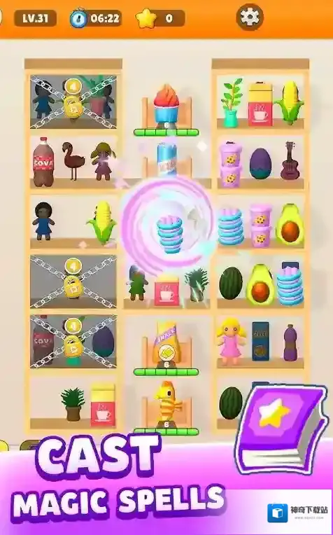 2、视听体验经过精心打磨,界面采用明快活泼的配色方案,不同类别物品都有独特音效反馈,搭配舒缓轻快的背景音乐,营造出舒适又充满活力的游戏氛围。