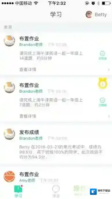 2.完成作业后,可以查看自己的学习记录,查看自己的作业的完成情况