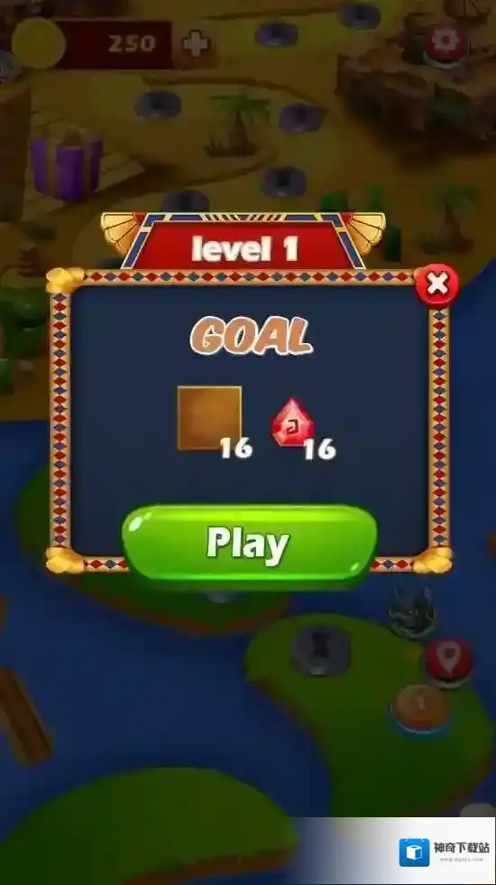 2、埃及风格的关卡内宝石闪耀,尝试交换相邻宝石,让三颗及以上同色宝石相连,触发带有法老元素的消除特效,推进关卡进程。