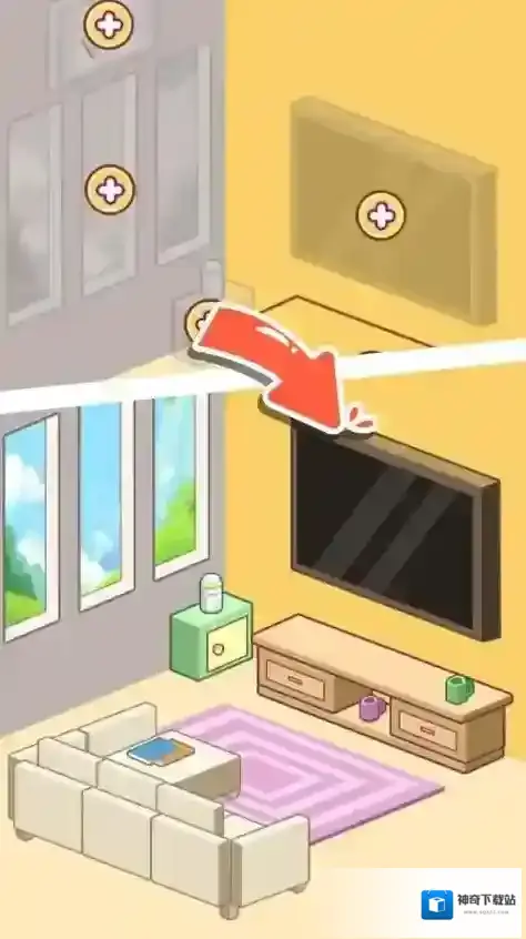 2、隐藏线索探索:部分谜题需要玩家在场景中寻找隐藏的提示,如墙上的图案、抽屉里的钥匙等,解开谜题才能推进装修进度。