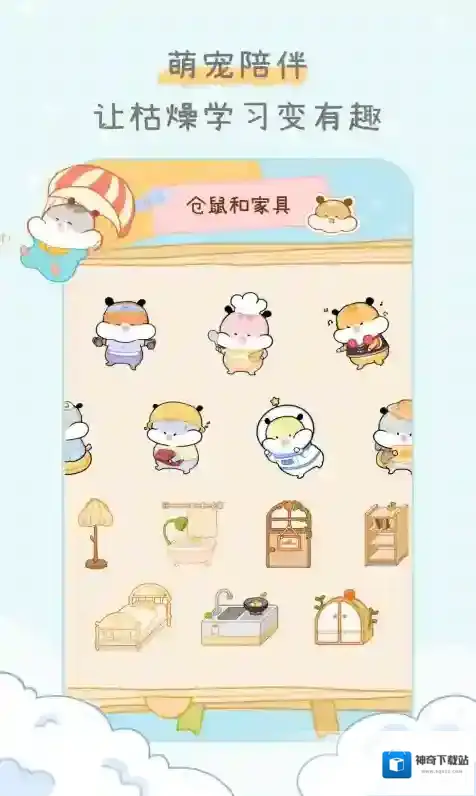 日常学习可以获得奶酪食物、随机道具、等来喂你的宠物;