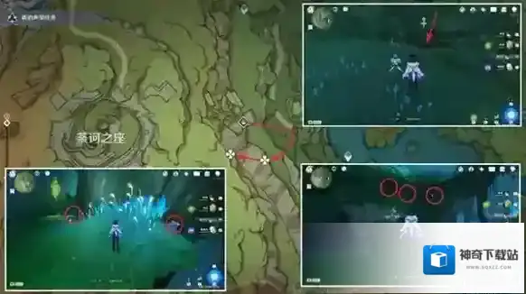 降诸魔山洞窟:大部分位于上层平台或藤蔓上,可借助四叶印快速收集,数量6,推荐指数★★★★。