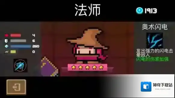 技能1:奥术闪电:发出强力的闪电眩晕被击中的敌人。满级后闪电伤害增加。