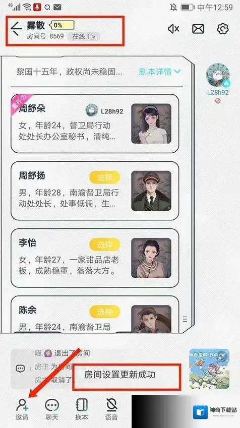 4. 返回剧本房间主界面,你会看到下方弹出提示房间设置更新成功。