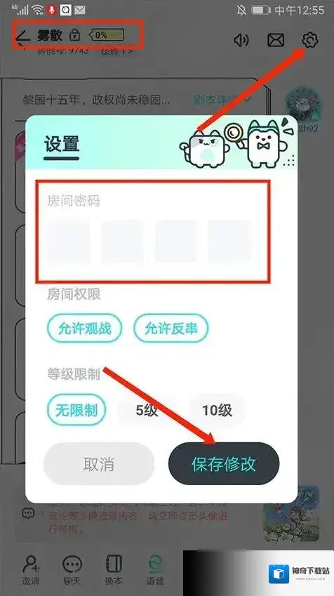 可以看到左上角剧本房间状态显示有一个锁图标,接着,在房间密码选项中删除密码,并点击保存修改。