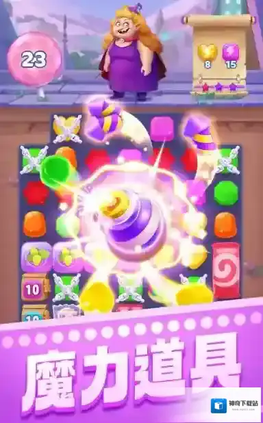 3、通过移动相邻图案,让三个相同图案连接在一起即可消除,成功消除目标图案时将会对女巫造成伤害。