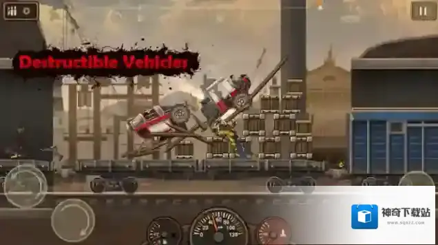 2、在行进过程中,你将会遇到众多拦路的僵尸,可以为你的战车配置武器进行攻击,也可以用最粗暴的撞击消灭它们。