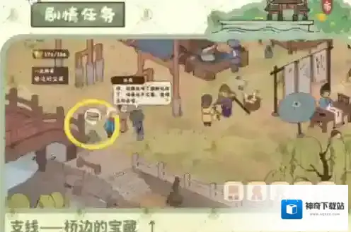 3、支线任务3:桥边的宝藏,需要我们来到集市的桥边,如图所示的位置,在这里可以找到宝藏。