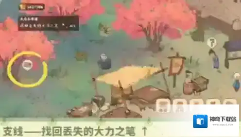1、支线任务1:找回丢失的大力之笔,来到集市中,在上方左边的桃花树下就可以找到。