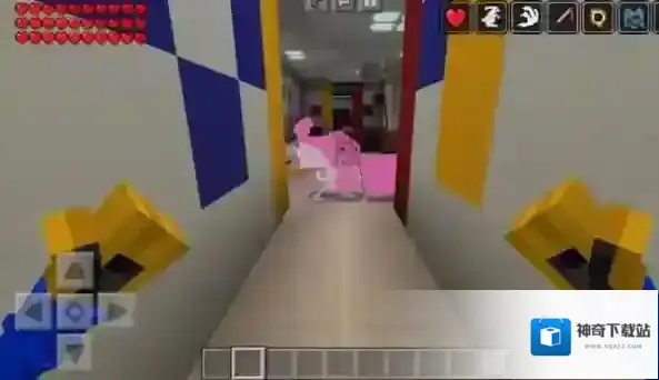 2、遇绿色长手怪物(类似波比角色),用左侧摇杆移动,避开攻击,寻找武器。